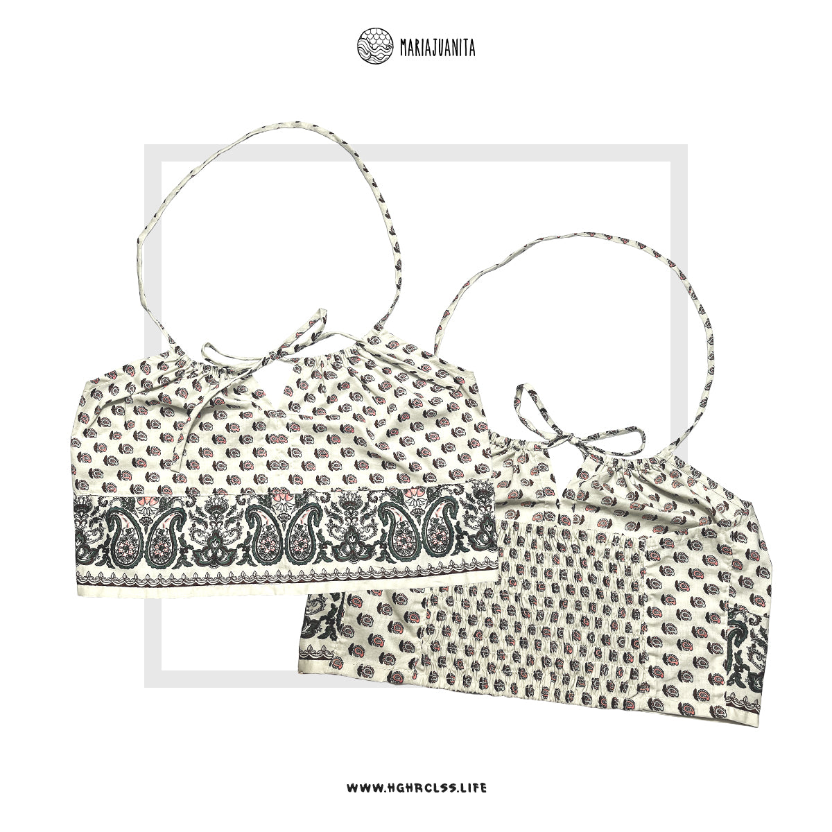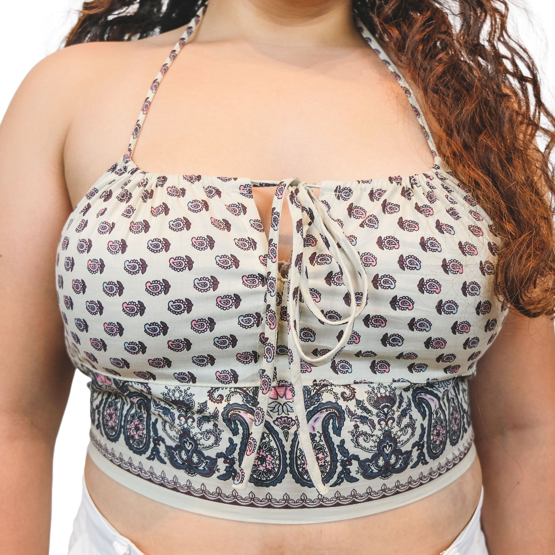 Inspired by cottagecore aesthetic, the milkmaid top is a very classic feminine style with an adjustable front tie, your choice of a bold loose fit or a neat modest fit. The CYPRESS is adorned in a vintage paisley pattern, a colorful hippie chic style that is simply timeless.